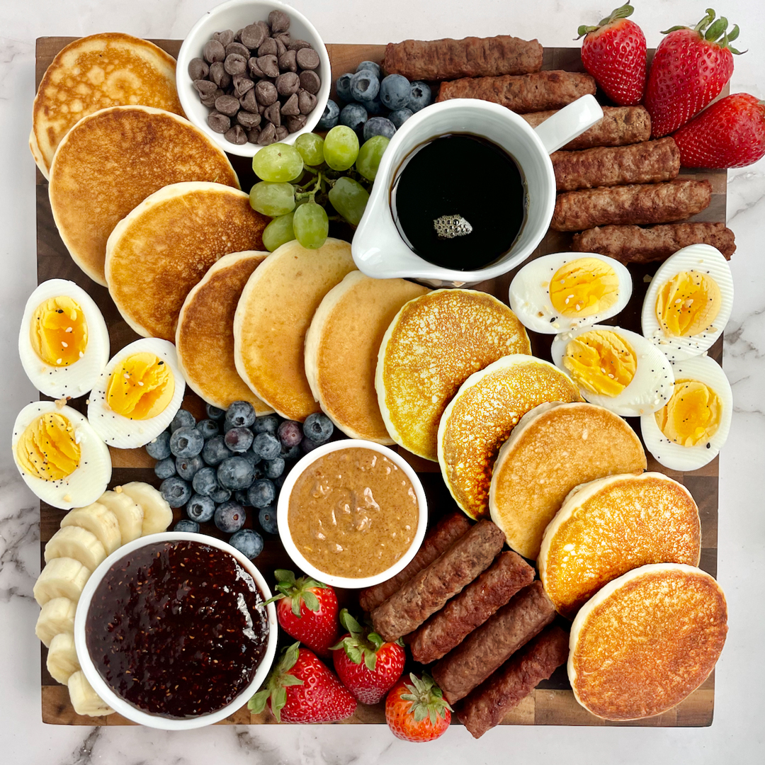 Breakfast Board with Sausage, Pancakes & all the FixingsBreakfast, Breakfast Sausage, Stovetop Recipe courtesy of Cheerful Choices Print Recipe Breakfast Board with Sausage, Pancakes & all the Fixings IngredientsTeton Waters Ranch Breakfast Sausage Original, Maple, and/or SpicyMini PancakesMaple SyrupFruit JamChocolate ChipsFresh Fruit grapes, strawberries, blueberries, sliced bananas, etc.Nut ButterHard Boiled Eggs InstructionsArrange all ingredients on a wooden board or serving platter.Store any leftovers in an airtight container for up to 3 days. Share on Facebook Pin Recipe Share by Email Tried this recipe?Mention @twrgrassfedbeef or tag #TetonWatersRanch! Featured Product More Recipes Maple-Dipped Crescent Breakfast Rolls Chicago-Style Hot Dog Biscuits & Sausage Gravy with Grass-Fed Beef Breakfast Patties Chili Cheese Dog Grilled Charcuterie Board with Grass-Fed Sausages + Hot Dogs Hearty Kielbasa & Cowboy Beans Teton Waters Ranch Breakfast Sandwich